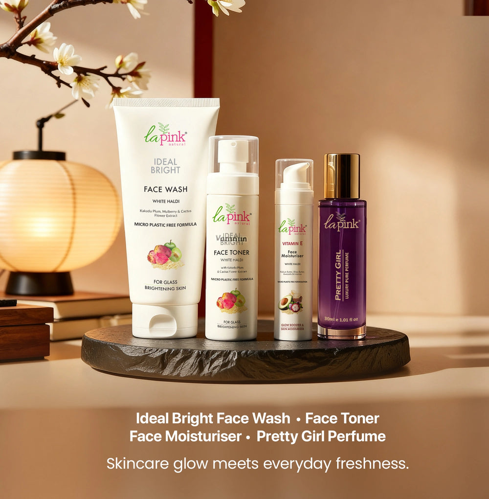 The Luxury Glow Skin & Perfume Gift Set is your essential collection for festive radiance and enduring freshness. This curated box includes a powerful AM/PM skincare ritual—the Ideal Bright Face Wash (100ml) and Face Serum (50ml)—infused with White Haldi and Kakadu Plum to target dullness and hyperpigmentation. Completing the luxury experience is the Miss Morning Pure Perfume (30ml), an elegant, skin-safe scent with long-lasting freshness. Perfect for gifting or indulging in a clean, high-performance beauty regimen.